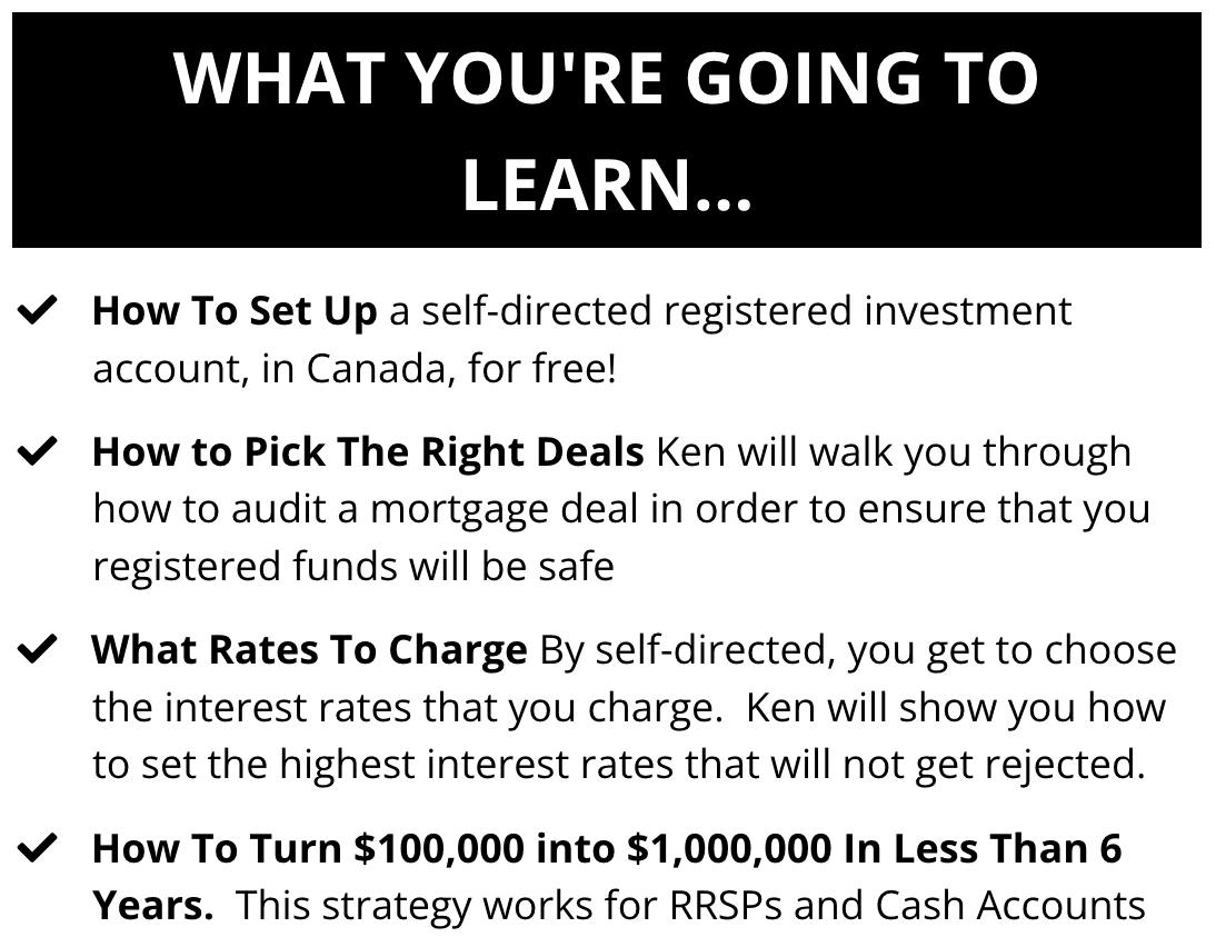 During this live workshop, Ken will show you exactly how to lend your Money, RRSP, LIRA & TFSA Money out in Short Term,